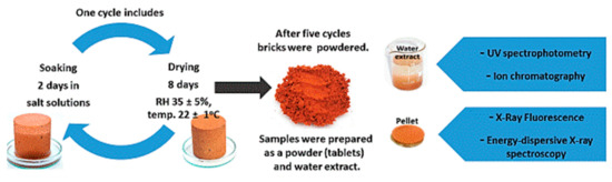 - Stryszewska, T. Effect of water solution of chloride salts on ceramic bricks drying. Ochrona przed Korozją. 2017, 60, 110–113. [Google Scholar] [CrossRef]