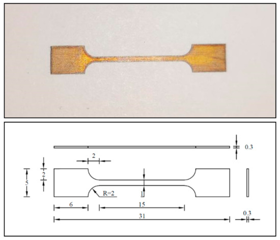 SMA dog bone sheet specimen and dimensions (Unit: mm).