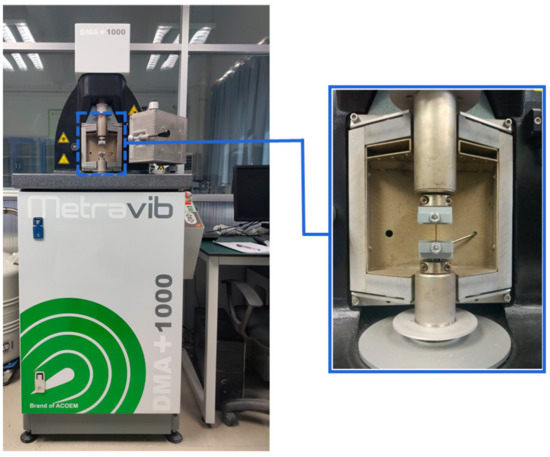 The fatigue test was carried out by Dynamic Mechanical Analyser (DMA + 1000) in Shenzhen University (Figure 2). This instrument can measure the stress response under alternating strain and a series of fatigue parameters such as stress, strain and effective modulus in material fatigue test. The maximum load that DMA + 1000 can apply is 200 N with precision of 0.0001 N, the chamber temperature error does not exceed ±0.1 °C. The advantage of DMA + 1000 is that it can intuitively measure the energy consumption (the loss modulus) during the loading test.