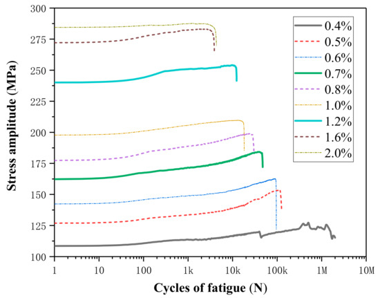Stress amplitude curves of different strain amplitudes at 40 °C.