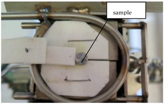 The samples were placed on the test table, under Ar protective atmosphere (Figure 2). A thermocouple (TC) was placed into a machined hole of the metallic sample and a solar-blind IR camera was used for temperature control during the heating process.