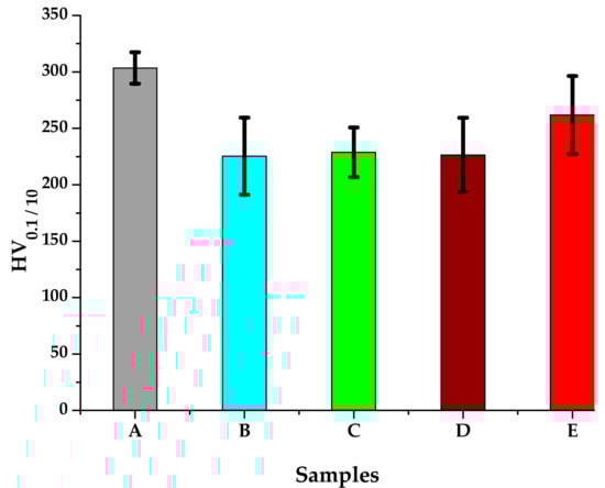 The tests related to chemical composition, structural evaluation and microhardness tests were conducted at Transilvania University of Brasov (Brasov, Romania). Several measurements were performed on each sample, the results were averaged, and the standard deviation was calculated.