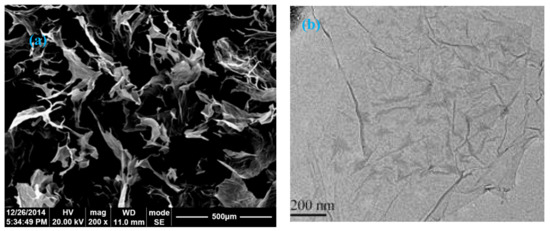 SEM and TEM image [32]: (a) SEM image of multilayer GO material; (b)TEM image of GO nanosheet.