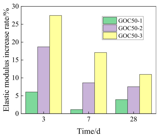 Figure 11 shows the increasing rate of the elasticity modulus of GO concrete at various ages when compared with ordinary group.