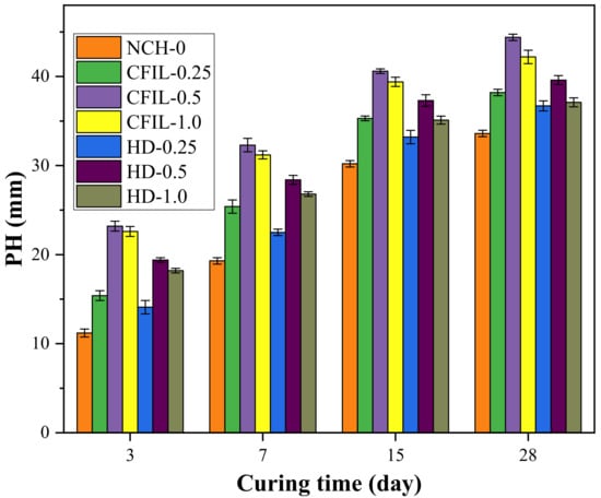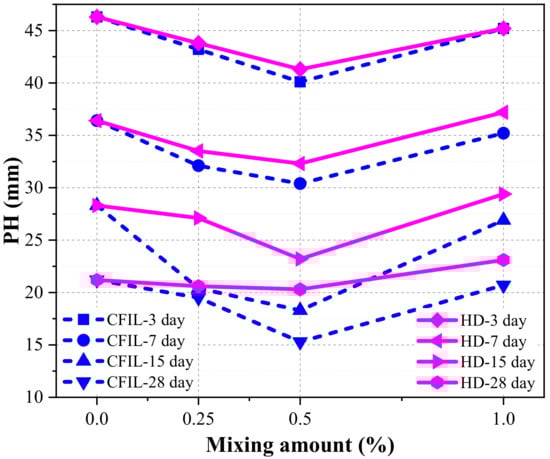 | EPR | Ratio of penetration height to specimen height (specimen height is 150 mm) at the curing time of 3 d. This ratio is called the early permeant ratio, which is abbreviated as EPR. |