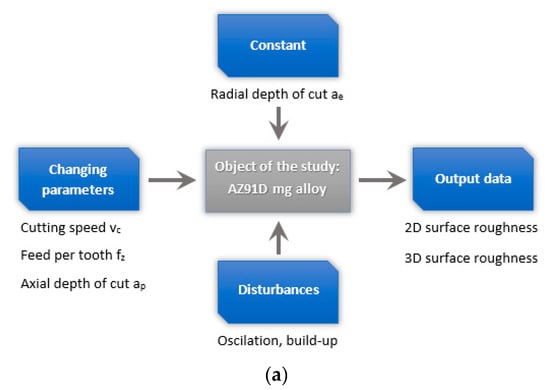 Magnesium alloys are the lightest metals used for construction purposes. Due to their low specific weight and high strength, their range of industrial applications is constantly increasing. The favorable properties also include recyclability, damping capacity, and good casting properties [1,2]. These qualities are particularly desirable in aerospace and automotive industries, which are constantly striving for ever lighter structures. Magnesium alloys, which belong to the group of light metals, are therefore suitable for whenever weight reduction is crucial. The increasing share of this group of materials in various industries increases the need for continuous development and improvement of machining processes. The requirements for manufactured elements are constantly increasing, so it is reasonable to strive to improve the quality of manufactured elements [3,4,5].
