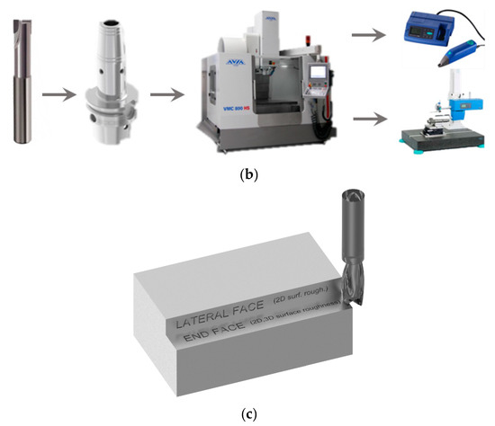 Schematic diagram of (a) the test set-up, (b) the object of the study and (c) milling visualization with the roughness measurement model.