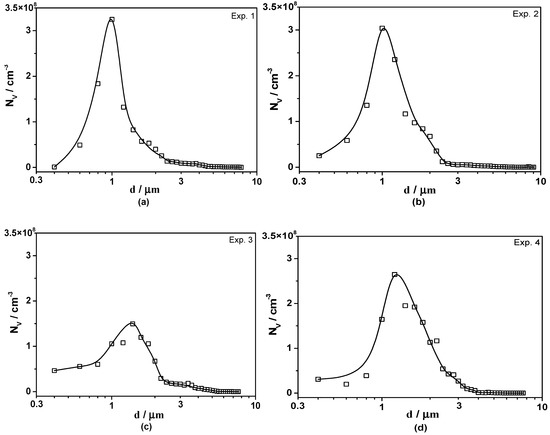Three-dimensional inclusion size distribution with single-phased morphology. (a) Experiment 1; (b) Experiment 2; (c) Experiment 3; (d) Experiment 4.