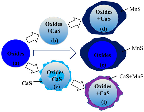 The formation mechanism of inclusions is illustrated in Figure 10 and different types of inclusions can be explained as following: