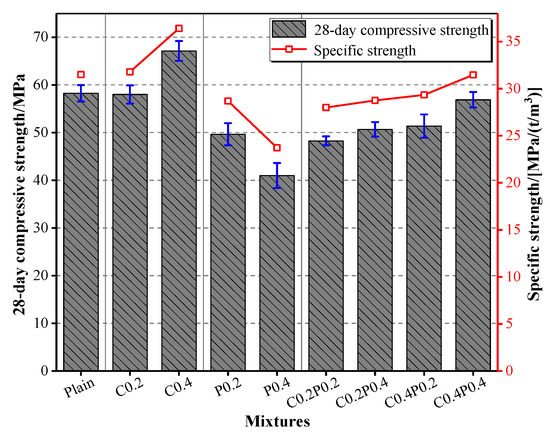 The 28-day compressive strength and corresponding specific strength of LWAC.