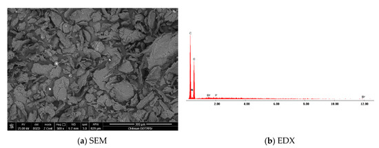 Scanning electron microscopy of new produced adsorbent material: (a) SEM and (b) X-ray energy dispersion—EDX.