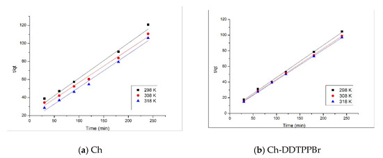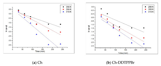 Pseudo first-order kinetic model (a) Ch; (b) Ch-DDTPPBr.