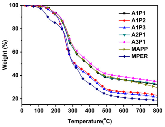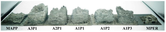 - Yang, L.; Cheng, W.; Zhou, J.; Li, H.; Wang, X.; Chen, X.; Zhang, Z. Effects of microencapsulated APP-II on the microstructure and flame retardancy of PP/APP–II/PER composites. Polym. Degrad. Stab. 2014, 105, 150–159. [Google Scholar] [CrossRef]