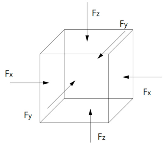Compared to the model size of cement-based materials on the macro-scale, the size of the C-S-H molecular model on the macro-scale is far too small, and the fatigue loading cannot be applied directly to the molecular model of the C-S-H pore structure. Considering that the pore structure of C-S-H will change under fatigue loading, a periodic loading is applied along the z-axis direction for the molecular model constructed in Section 3.1.3. An isothermal-isobaric (NPT) ensemble is adopted in MD simulation, in which the volume of the structural system can change freely. The temperature is also set at 298 K, which is controlled by the Nosé–Hoover method. The periodic loading is controlled by the Parrinello–Rahman method [22], which can change the volume of the C-S-H pore structure. The MD simulation of NaCl transport properties in C-S-H nanopores with a size of 1.5 nm under periodic loading is conducted. Since the effect of external mechanical loading (compressive and tensile) on chloride diffusivity has been systematically investigated by Du [34]. In this study, the authors focus on the effect of fatigue loading on chloride diffusivity using MD simulation. During MD simulation, fatigue loading is regarded as sustained loading (compressive and tensile) that do not change for a period of time. The cyclic loadings are employed by considering the loading frequency and loading pattern [35,36]. The calculated diffusion coefficient depends on the loading process. Jiang [37] employed the number of fatigue cycles as the damage index which established the quantitative relationship between the fatigue damage degree and chloride diffusion coefficient. The results show that the diffusion coefficient of chloride ion in the structural concrete increases with the increase of loading frequency. In our investigation, only one loading frequency (0.25 MPa/fs) is adopted to examine the effect of fatigue loading on chloride diffusion in C-S-H pore structure. The adopted loading pattern is uniaxial alternate tension–compression fatigue loading (shown in Figure 4 and Figure 5), and the simulation is completed for 30 cycles in total.
