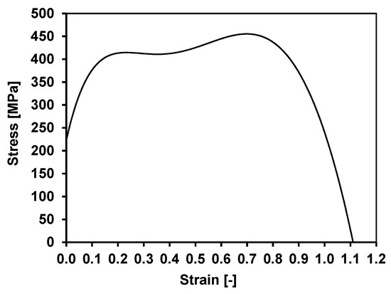 During the numerical modelling of the rolling process of 5.5 mm wire rod in the NTM and RSM blocks of the rolling mill, the rheological properties of the studied steel were defined using Equation (6) and the coefficients given in Table 5.