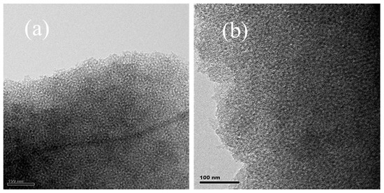 TEM images of OMC (a) and KOMC-3 (b).