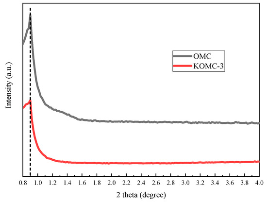 Low-angle XRD patterns of OMC and KOMC-3.