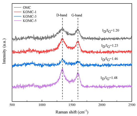 Raman spectra of OMC and KOMC-x.