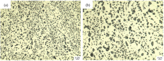 Micro sections of LPBF-AlSi7 samples for (a) 15 min and (b) 60 min solution annealing, followed by rapid quenching, illustrating coarsening for α-Al and Si particles.