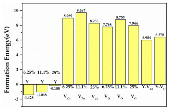 The formation energies of ZnO MLs with Y, VZn, VO, and ZnO MLs with Y and vacancy.