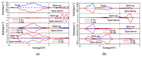 The calculated TDOS and PDOS of (a) Y-VZn-ZnO, (b) Y-VO-ZnO.