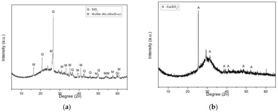 XRD spectra of the amorphous fillers: (a) Fly ash; (b) Blast furnace slag.
