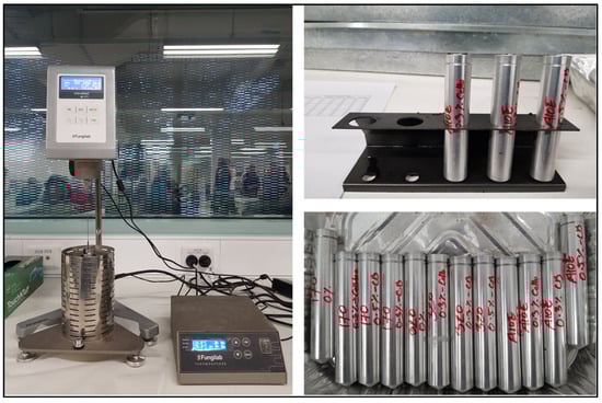 The viscosity test was conducted on all the samples using a Fungilab (Barcelona, Spain) rotational viscometer according to AASHTO T 316, ASTM D 4402, and AG: PT/T111. Figure 9 shows the viscosity test of the binder carried out in the laboratory.