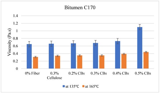 Figure 12. Comparative viscosity of Bitumen C170 modified with different types of fiber.