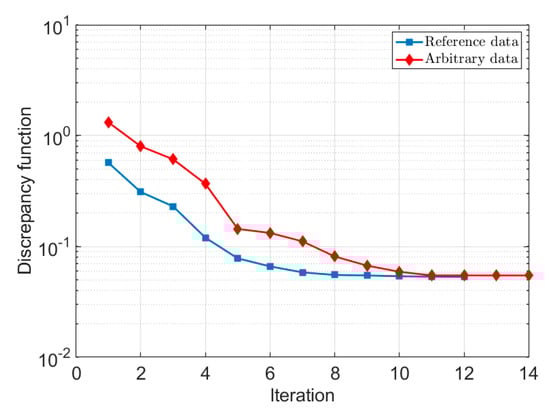 Trend of change in the discrepancy function during the optimization procedure.