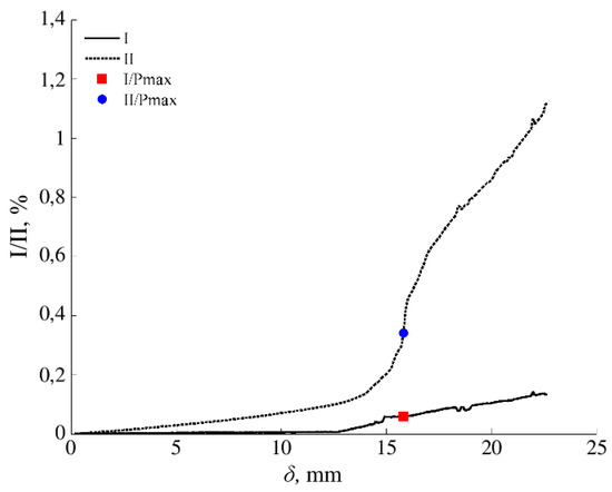 As can be seen in the table, the GII,Pmax values resulted similar to those of GIIc. Therefore, the first one could be assumed as critical strain energy release rate value in Mode II in a practical way or in cases where R-curve does not show a clear horizontal asymptote. It would mean that a critical energy would be already consumed at maximum load on the onset of a fully developed FPZ just before steady-stage crack propagation [22,24].