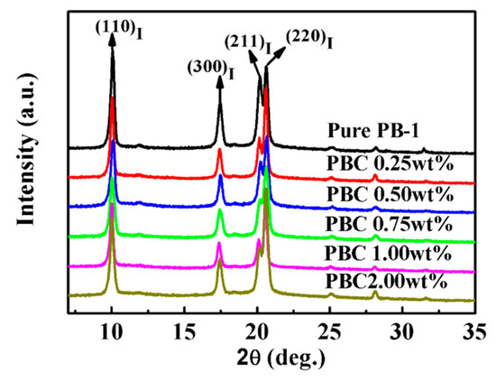 3.1. Effect of MWCNT on Phase Transformation of PB-1 Thin Films