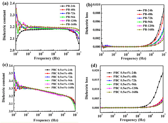 3.2.1. Effect of Phase Transition Time on Dielectric Properties