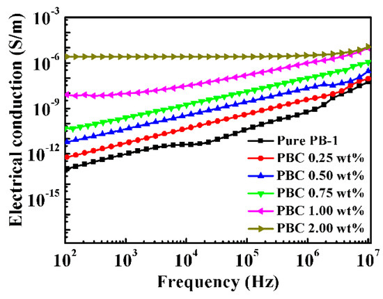 3.3.2. Dielectric Properties of MWCNT/PB-1 Films with Different Contents of MWCNT