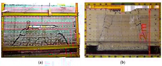 Similar simulation experiments are important research method commonly used in geotechnical engineering, in particular, in coal mining. Thus, they have been used to study the influence of underground mining on slope movement [1], coal mining subsidence in mining area after coal mining [2,3], development pattern of mining fissures [4,5], overburden movement pattern of coal seams [6,7,8], coal and gas outburst [9,10], and so on. However, many influencing factors affect mechanical test results, which implies instability of mechanical properties of rock-soil similar materials and low test repeatability. Figure 1a,b depicts similar simulation experiments, which were conducted using the same equipment and scheme, but different types of sand, respectively: (1) Desert aeolian sand, in Urumqi, Xinjiang University of China), and (2) river sand in Xuzhou, China University of Mining and Technology. In the experiment in Xuzhou, the fissures penetrated the ground, and the main critical layer was broken and fractured. However, in the experiments in Urumqi, the main critical layer was not broken. These differences can be attributed to several influencing factors, including sand particle size, compaction degree, curing temperature, curing humidity, etc. In order to improve the accuracy and repeatability of similar experiments, it is necessary to study these factors, explore the mechanism of their effect on mechanical properties, and elaborate a more standardized experimental method.