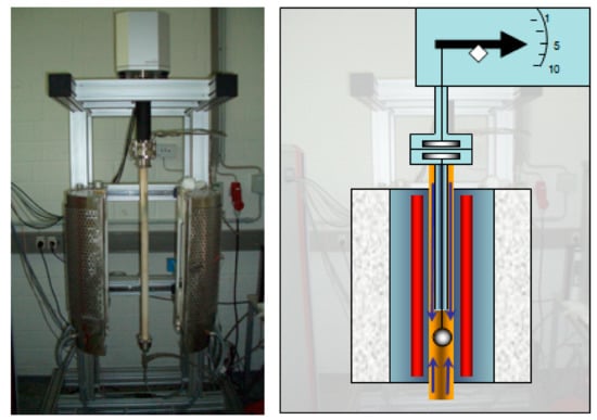 Thermogravimetric analyzer (Firm - Rubotherm). Left: picture with open furnace, Right: schematic structure.