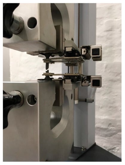 Tensile testing of 3D-printed specimens was performed on a static material testing machine Shimadzu AGS-X 10 kN fitted with an extensometer (Shimadzu Corporation, Kyoto, Japan) (Figure 3).