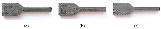 Examples of printed specimens are shown in Figure 5. It can be seen that varying the printing parameters changed the appearance of the 3D-printed specimens.