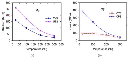 This is also a reason explaining why the difference between CYS and CPS is, at lower temperatures, so big compared with the difference between the TYS and MTS (in the case of pure Mg ~200 MPa against ~100 MPa). This fact is well demonstrated in Figure 13.