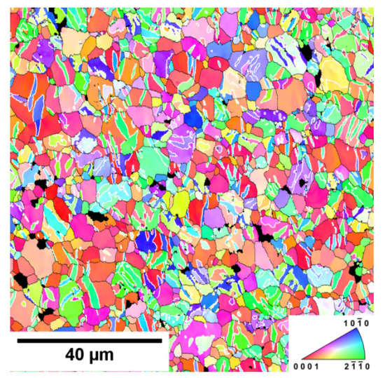 EBSD image of the Mg + 1.7 In718 sample after predeformation εpl = 0.02.