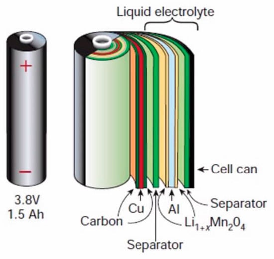 - Doeff, M.M. Battery Cathodes. In Encyclopedia of Sustainability Science and Technology; Brod, R.J., Ed.; Springer: New York, NY, USA, 2013. [Google Scholar]