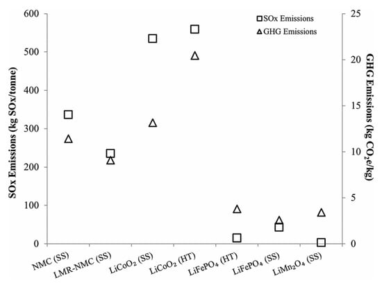 - Liang, Y.; Su, J.; Xi, B.; Yu, Y.; Ji, D.; Sun, Y.; Cui, C.; Zhu, J. Life cycle assessment of lithium-ion batteries for greenhouse gas emissions. Resour. Conserv. Recycl. 2017, 117, 285–293. [Google Scholar] [CrossRef]