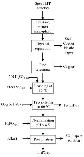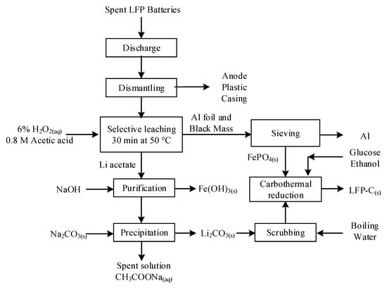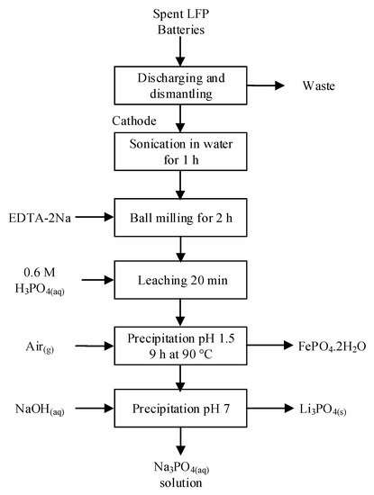 - Wang, X.; Wang, X.; Zhang, R.; Wang, Y.; Shu, H. Hydrothermal preparation and performance of LiFePO4 by using Li3PO4 recovered from spent cathode scraps as Li source. Waste Manag. 2018, 78, 208–216. [Google Scholar] [CrossRef]