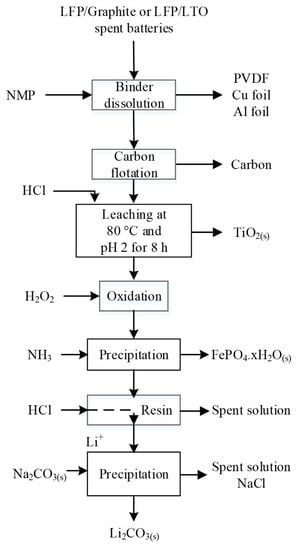 - Golmohammadzadeh, R.; Faraji, F.; Rashchi, F. Recovery of lithium and cobalt from spent lithium ion batteries (LIBs) using organic acids as leaching reagents: A review. Resour. Conserv. Recycl. 2018, 136, 418–435. [Google Scholar] [CrossRef]