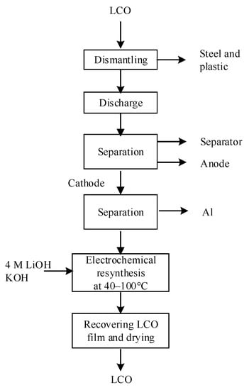 - Ra, D.-I.; Han, K.-S. Used lithium ion rechargeable battery recycling using Etoile-Rebatt technology. J. Power Sources 2006, 163, 284–288. [Google Scholar] [CrossRef]