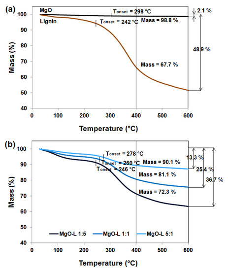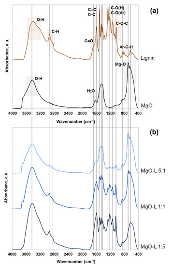 2.2. Preparation of MgO-Lignin Hybrid Systems