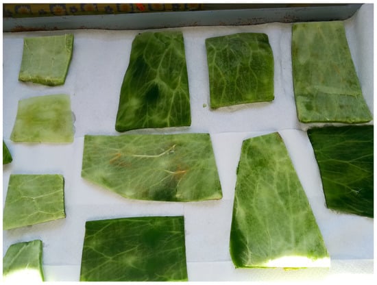 Cladodes after cutting for mucilage isolation, before starting the different procedures.