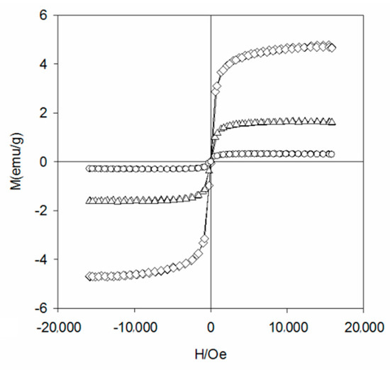 The magnetization curve of WBC10(◊), WBC11(Δ) and WBC12(○).