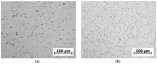 As shown in Figure 2 and Figure 3, it can be assumed that the structure of the tested material in the longitudinal and transversal directions is formed by the polyhedral grain of approximately the same dimensions. Uniformly distributed intermetallic phases are observed in the grain of the tested material, shown in detail in Figure 3. The grain boundaries show the presence of segregates. With respect to the distribution of the intermetallic phases and polyhedric grain sizes, we can assume that the microstructure of the material EN AW 6063.T66 does not show any attributes of the state after forming. With respect to the way of the heat treatment, it is evident that the grain recrystallization took place in the process of annealing the solution. We also assume that this was one of the reasons for using the heat treatment.