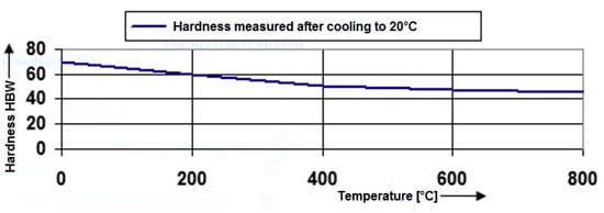 The impact of the individual phases on the material hardness was investigated by hardness tests. The hardness value of the tested material EN AW 6063.T66 was defined by Brinell when the pressed ball from the hardened alloy with the diameter of 5 mm was pressed into the material during the time of 10.5 s and by the force of 225 N. This hardness test is marked as HBS. In addition to the hardness measurement of the basic material, the hardness measurement of the affected area and the welding metal also took place. Their distribution was monitored by means of numerical simulations. The hardness tests of the basic material, the heat affected area and the welding material showed softening of the material (Table 1, followed by Figure 20) as a result of the introduced heat against the basic material.