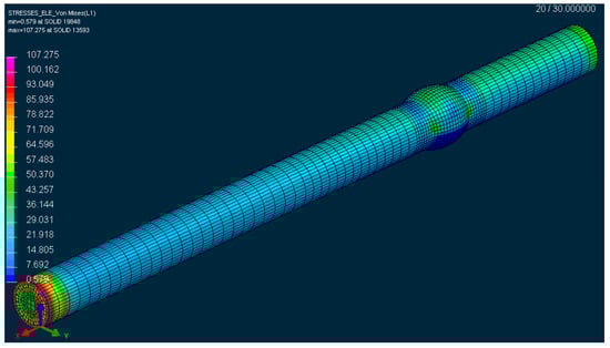 The reduced stress according to the hypothesis HMH in the tested sample after welding in the period t = 30 s, according to the simulation designed in the software SysWeld.
